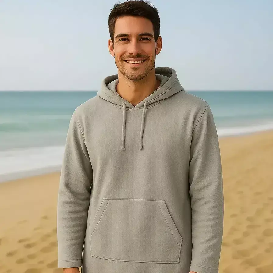 Con capucha y bolsillo canguro, es perfecto para tus días de sol, arena y mar.