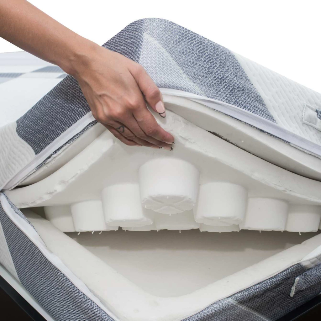 Su estructura de poliuretano flexible MDI, libre de materiales tóxicos y sin insertos metálicos, asegura un nivel de apoyo perfecto, soportando hasta 250kg por lado. Además, es desarmable, ideal para trasladar en espacios reducidos, y su funda desmontable y lavable facilita el mantenimiento.
