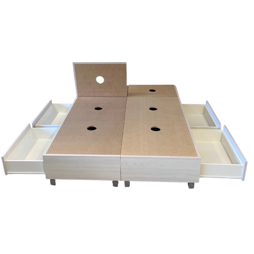 Cama Sommier DECO 200x200cm con Amplio AlmacenamientoDescubrí la combinación perfecta entre diseño y funcionalidad. Esta cama sommier, con medidas generosas de 200x200 cm, está pensada para optimizar tu espacio con 2 cajones amplios por lado con correderas telescópicas (0,64 x 0,50 x 0,14 m cada uno) y 2 bauleras en la cabecera (1 x 0,50 x 0,23 m), ideales para mantener todo organizado.