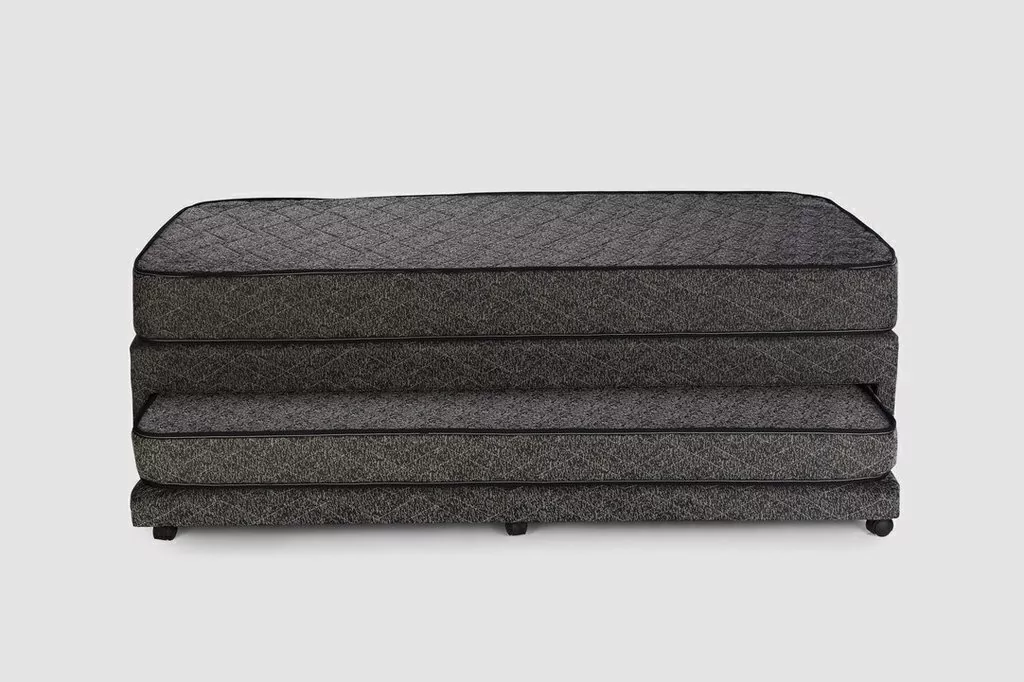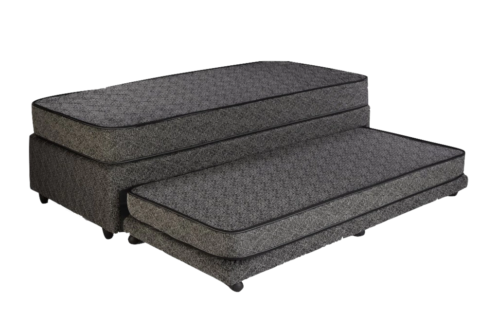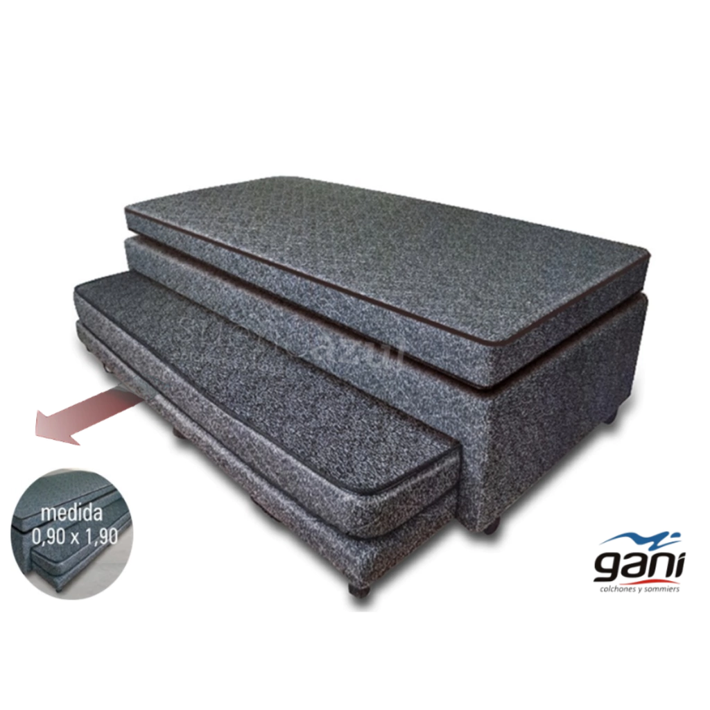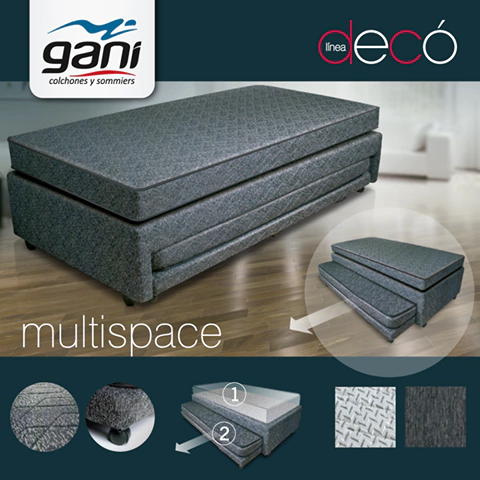 Exclusivo modelo Multifuncional que permite contar con 2 camas en el espacio de 1.Incluye 2 colchones, superior e inferior, de espuma de poliuretano revestidos en tela chenille totalmente matelasseada.
